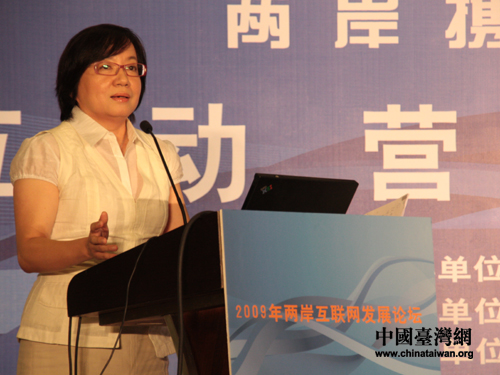 在昨天舉行的2009兩岸互聯(lián)網(wǎng)發(fā)展論壇上,安吉斯媒體集團大中華區(qū)首席執(zhí)行官李桂芬作了題為“網(wǎng)絡(luò)廣告代理機構(gòu)如何因應(yīng)網(wǎng)絡(luò)廣告發(fā)展”的演講(中國臺灣網(wǎng) 賀晨曦 攝)