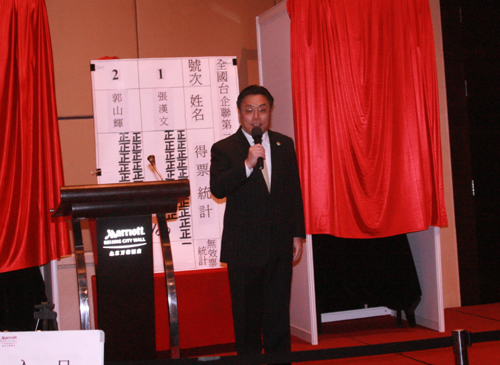三位會長候選人張漢文、郭山輝、林伯豐分別進行了10分鐘的政見發(fā)表,向與會會員闡述執(zhí)政理念及當選后的執(zhí)政規(guī)劃。經(jīng)過兩輪的不記名投票,郭山輝、張漢文分別獲得選票101張和100張。