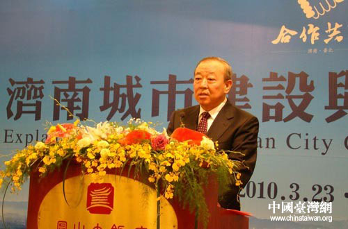 3月23日,省委常委、市委書記焉榮竹出席“2010濟南城市建設與發展說明會”并致詞。圖片來源:濟南市臺辦