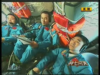 航天員向胡錦濤主席匯報出艙活動的感受(視頻截圖)