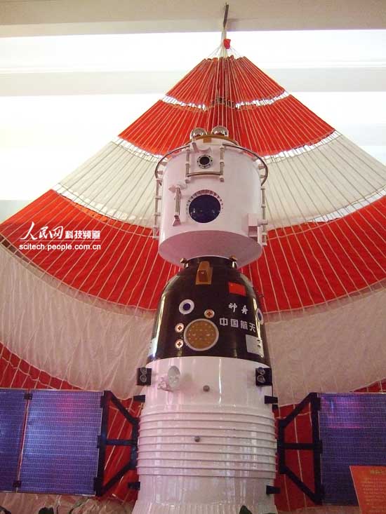 神舟七號飛船模型與降落傘。