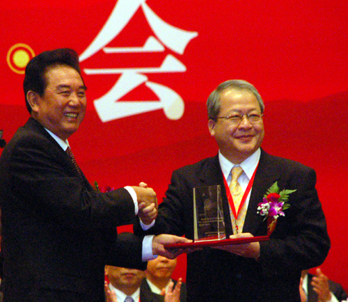 國臺辦主任陳云林為臺企聯理事丁鯤華頒發證書