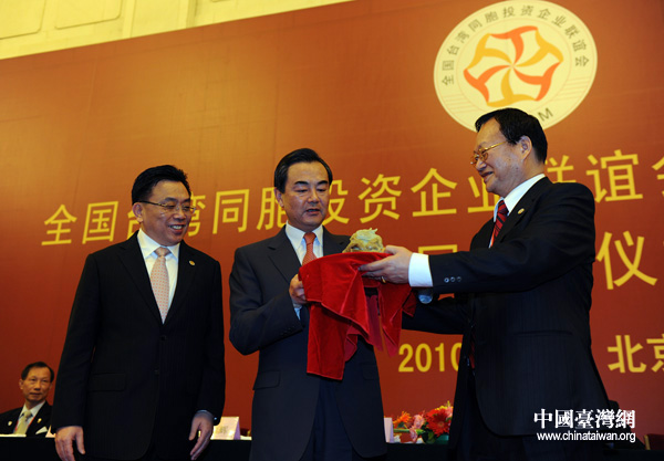 中國臺灣網5月14日北京消息  全國臺灣同胞投資企業聯誼會第一、二屆會長換屆交接儀式,14日下午在人民大會堂舉行。中國中央臺辦、國務院臺辦主任王毅、海協會會長陳云林等出席了儀式。(記者 鐘寶華)