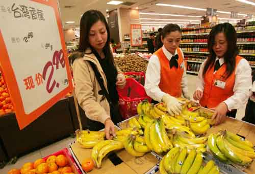 據東方網消息,大陸緊急采購銷往上海的臺灣香蕉6日正式上柜供應。相關果品公司人士說,由于臺灣香蕉在上海果品市場是“新角色”,激發了不少市民的“嘗新”消費,首日“銷得很好”,上市的10噸左右香蕉到了傍晚就“基本賣完了”。