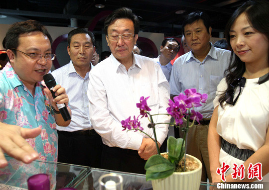 6月20日,河南省長郭庚茂率領“中原經濟區合作之旅---走進臺灣”參訪團在臺南市“蘭花生物科技園”考察。中新社發 趙振清 攝