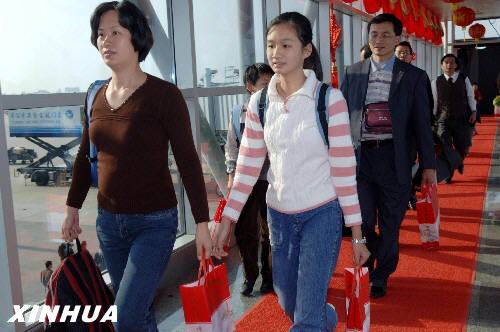 2月7日,廈航MF884航班順利抵達(dá)廈門高崎機(jī)場,乘客走進(jìn)機(jī)場航站樓。當(dāng)日15時25分,廈門航空公司MF884航班從高雄飛抵廈門高崎機(jī)場。至此,2006年兩岸春節(jié)包機(jī)所有航班順利執(zhí)飛完畢。 新華社發(fā)