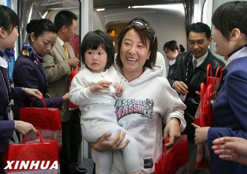 2006年兩岸春節(jié)包機(jī)圓滿結(jié)束 2月7日,廈航MF884航班順利抵達(dá)廈門高崎機(jī)場,一名乘客抱著孩子走出機(jī)艙。當(dāng)日15時25分,廈門航空公司MF884航班從高雄飛抵廈門高崎機(jī)場。至此,2006年兩岸春節(jié)包機(jī)所有航班順利執(zhí)飛完畢。 新華社發(fā)