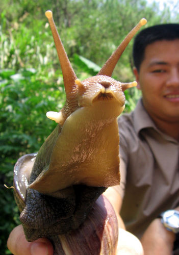 2006年8月26日晚,福州農大學生小廖在回宿舍的路上,發現一只長達17厘米,重約300克的巨型蝸牛。后來小廖因為好奇把這只大家伙帶回宿舍過了一夜。