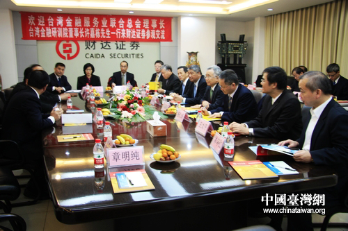 11月30日上午,“臺灣金融團”來到石家莊市財達證券公司進行參觀訪問。(中國臺灣網(wǎng) 馬迪 攝)