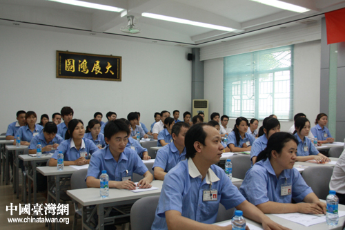 飛鴻五金飾品有限公司中層管理干部接受講師現場培訓。(中國臺灣網 胡珊珊 攝)