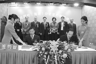 23日,由國臺辦海峽兩岸出版交流中心和泉州閩南書局合作的九州出版社海西分社,在泉州簽約并舉行授牌儀式,這標志著國臺辦與泉州在拓展涉臺出版事業、服務兩岸同胞的合作上邁出實質性步伐。(記者 劉益清 通訊員 吳越 攝)