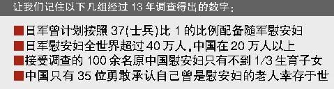 60多年前,她們在被稱作“慰安所”的人間地獄里遭受非人的凌辱;60年后,她們中的大多數人在凄苦中辭世。60多年前,她們在慰安所房間的牌子上只有號碼;60年后她們不愿也不敢向身邊的人提起那段不堪回首的經歷。她們痛恨這個名字—— 慰安婦。