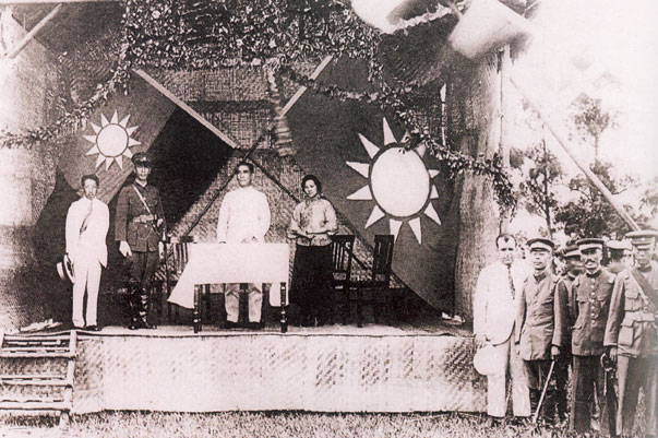 1924年6月16日,孫中山、宋慶齡在黃埔軍校開學典禮的主席臺上。