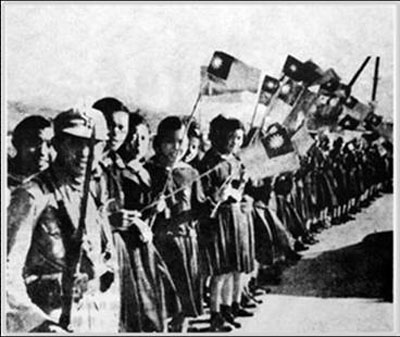 臺灣青年學生歡迎祖國軍隊進駐臺灣。