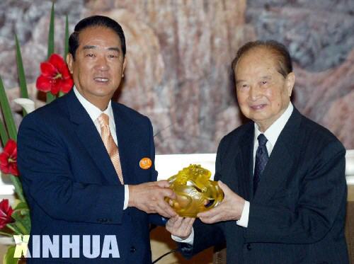 2005年5月8日,海峽兩岸關系協會會長汪道涵在上海會見親民黨主席宋楚瑜。