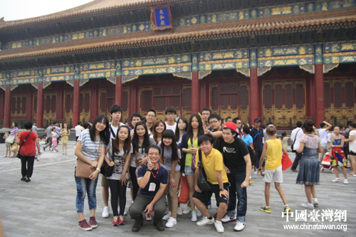 中國臺灣網(wǎng)8月12日北京消息 淺淺海峽,濃濃情誼,兩岸學(xué)子,心手相連。8月11日,由中國宋慶齡基金會和臺灣“十大杰出青年基金會”共同組織的臺灣青年學(xué)生交流團,參觀了故宮博物院、景山公園和天壇。在結(jié)束五天的北京參訪之旅后,他們將前往江南和西安,繼續(xù)開展以“歷史為根、文化為魂”為主旨的交流活動。