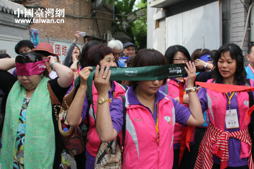 臺灣參訪團成員蒙上眼睛準備開始體驗。(中國臺灣網(wǎng) 郭瑩瑩 攝)