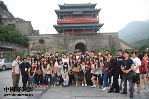 臺灣青年學(xué)生交流團(tuán)自8月8日起,開始了北京參訪之旅。圖為團(tuán)員們在居庸關(guān)長城前合影留念(中國臺灣網(wǎng) 吳曉寒 攝)