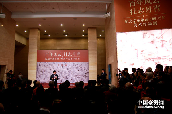 中國臺(tái)灣網(wǎng)10月8日北京消息 為隆重紀(jì)念辛亥革命100周年,“百年風(fēng)云 壯志丹青——紀(jì)念辛亥革命100周年美術(shù)作品展覽”8日下午在中國美術(shù)館開幕。近300件作品薈萃一堂,展示了兩岸四地及海內(nèi)外美術(shù)界紀(jì)念辛亥百年、緬懷革命先驅(qū)精神的美術(shù)創(chuàng)作風(fēng)貌。