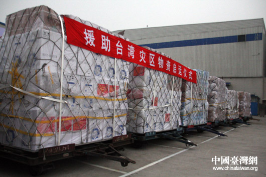 中國臺灣網(wǎng)8月18日北京消息 “援助臺灣災(zāi)區(qū)物資啟運(yùn)儀式”即將在北京首都機(jī)場舉行,包括睡袋、毛毯、噴霧器、噴霧噴粉機(jī)等救災(zāi)物品已經(jīng)整裝完畢,待發(fā)臺灣。(記者 鐘寶華)