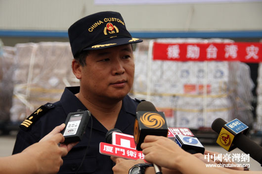 海關(guān)人士在啟運(yùn)儀式現(xiàn)場接受媒體采訪。(中國臺灣網(wǎng) 鐘寶華 攝)