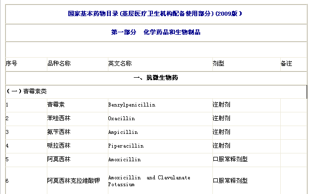 《國家基本藥物目錄(基層醫(yī)療衛(wèi)生機構(gòu)配備使用部分)》(2009版)已于2009年8月17日衛(wèi)生部部務會議討論通過,現(xiàn)予以發(fā)布,自2009年9月21日起施行。