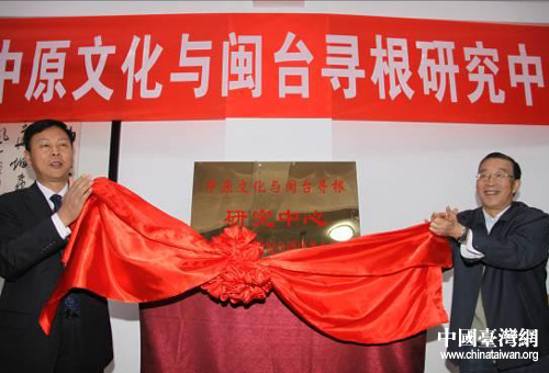 “中原文化與閩臺尋根研究中心”揭牌儀式(圖片來源:河南省臺辦)