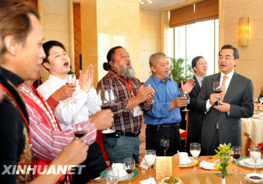 當日,中共中央臺辦、國務(wù)院臺辦主任王毅會見并宴請來北京出席“臺灣少數(shù)民族歷史文化展”的臺灣少數(shù)民族代表人士訪問團。新華社記者 金良快 攝