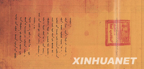 這是雍正元年(公元1723年)雍正皇帝封賞六世達賴喇嘛的敕諭。 新華社發(fā) 組圖:歷史檔案證明:歷世達賴喇嘛都經(jīng)中央政府認定、冊封