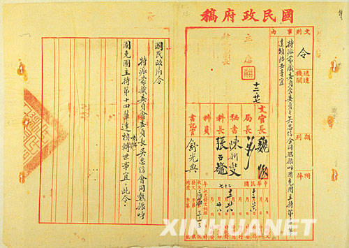 這是1938年國民政府特派蒙藏委員會主任吳忠信主持第十四世達賴喇嘛轉(zhuǎn)世事宜的令。 新華社發(fā)