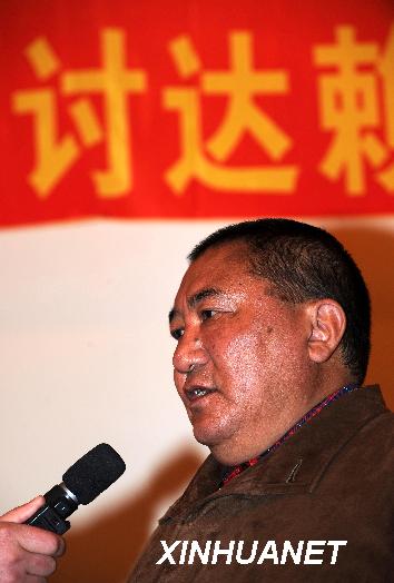 中國(guó)佛教協(xié)會(huì)西藏分會(huì)會(huì)長(zhǎng)珠康·土登克珠活佛強(qiáng)烈譴責(zé)參與拉薩打砸搶燒事件的不法分子(3月20日攝)。 3月14日,在達(dá)賴集團(tuán)一手策劃下,拉薩發(fā)生了有組織、有預(yù)謀的打砸搶燒嚴(yán)重暴力犯罪事件,給各族人民的生命財(cái)產(chǎn)安全造成極大危害,嚴(yán)重?cái)_亂安定團(tuán)結(jié)的社會(huì)局面,嚴(yán)重阻撓經(jīng)濟(jì)社會(huì)各項(xiàng)事業(yè)的發(fā)展,激起了西藏自治區(qū)各族各界干部群眾的強(qiáng)烈憤慨。 新華社記者覺果攝
