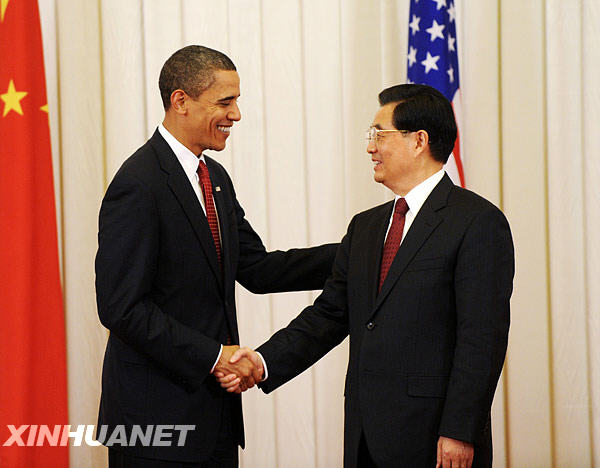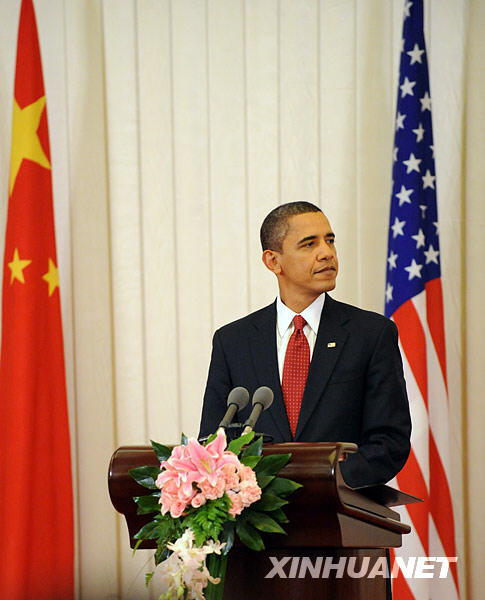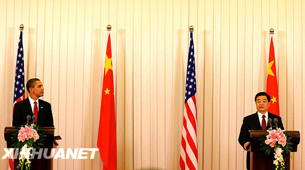 11月17日,中國(guó)國(guó)家主席胡錦濤和美國(guó)總統(tǒng)奧巴馬在北京人民大會(huì)堂共同會(huì)見(jiàn)中外記者。新華社記者李學(xué)仁攝