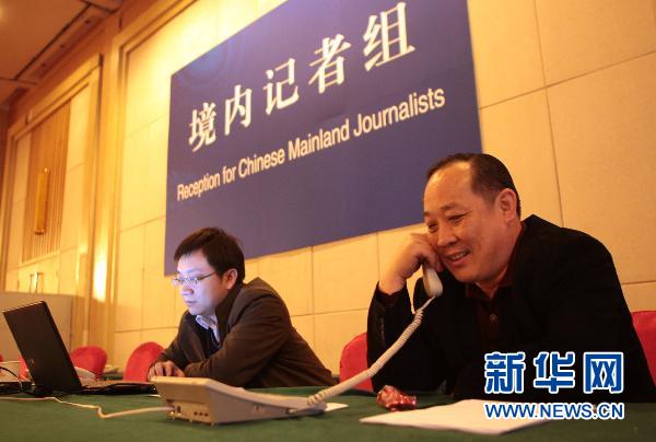 2月26日,中國(guó)聯(lián)通北京分公司的員工宋欣(左)在新聞中心值班。第十一屆全國(guó)人民代表大會(huì)第四次會(huì)議和中國(guó)人民政治協(xié)商會(huì)議第十一屆全國(guó)委員會(huì)第四次會(huì)議,將分別于2011年3月5日和3月3日在北京開(kāi)幕。十一屆全國(guó)人大四次會(huì)議、全國(guó)政協(xié)十一屆四次會(huì)議在北京西長(zhǎng)安街北側(cè)的梅地亞中心設(shè)立新聞中心,負(fù)責(zé)接待和安排中外記者對(duì)會(huì)議的采訪(fǎng)。新華社記者 邢廣利攝