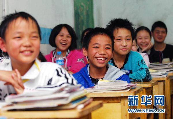 2010年11月11日,重慶渝北第二實(shí)驗(yàn)中學(xué)初一(14)班的學(xué)生在課堂上。該校從2010年開始招收農(nóng)民工子女后,采取隨機(jī)混合編班等措施,讓農(nóng)民工子女從環(huán)境和心理上自然融入城區(qū)學(xué)生當(dāng)中。新華社發(fā)(阮藐藐 攝)