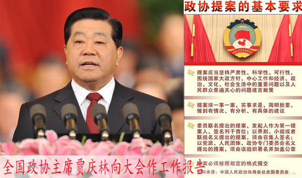 全國政協主席賈慶林向大會作...