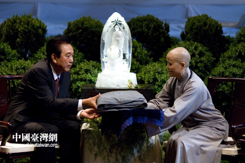 陳云林首先為慈濟對四川汶川地震災區同胞的無私援助,向證嚴法師表示感謝。