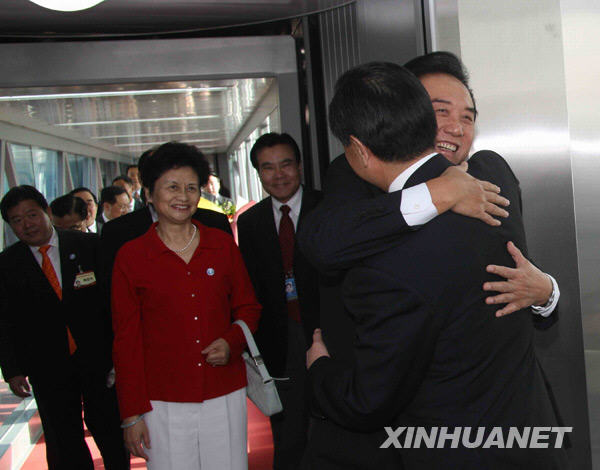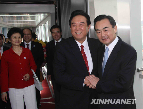 11月7日,海協(xié)會會長陳云林一行結(jié)束訪臺行程,于13時50分許乘機回到北京。中臺辦、國臺辦主任王毅到機場迎接。新華社記者 汪永基 攝