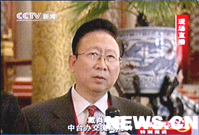 2006年4月,中臺辦交流局局長戴肖峰在兩岸經貿論壇上接受采訪(圖片來源:中國網)