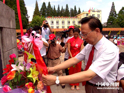 2006年7月31日,“海峽兩岸炎帝神農文化論壇”,國臺辦交流局局長戴肖峰向神農像敬獻花籃