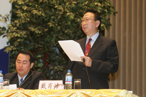 2006年8月7日,國務院臺辦交流局局長戴肖峰在海峽兩岸暨香港、澳門警學研討會上致辭(圖片來源:中國警察協會網)