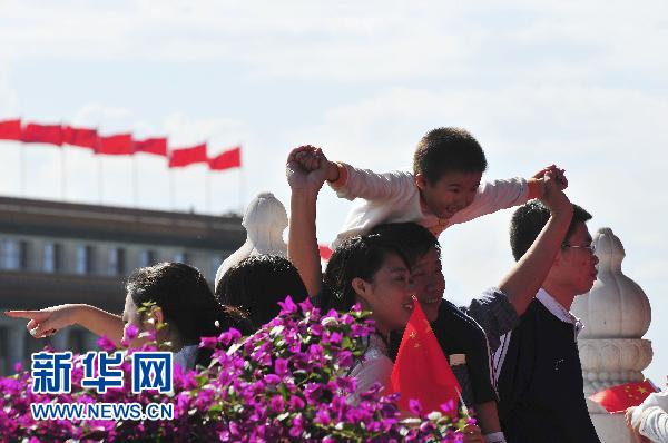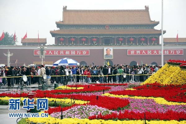10月2日,游客在北京天安門廣場游覽。新華社發(樊甲山 攝)