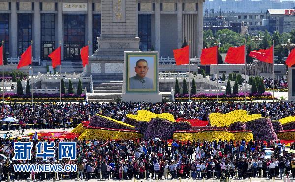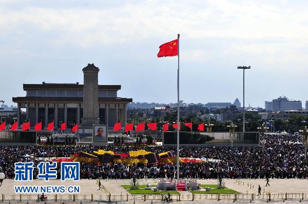 10月2日,游客在北京天安門廣場游覽。當日,北京天氣晴好,天安門、故宮地區迎來如潮的游人。 新華社發(陳柏材 攝)
