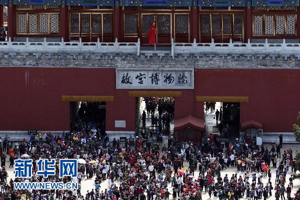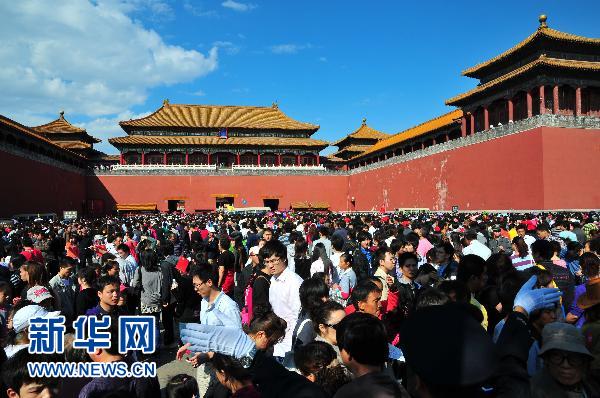 10月2日,北京故宮北門廣場游人如織。新華社發