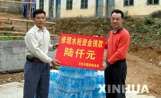 崇左市江州區國稅局結合稅法宣傳投入抗旱救災工作。一是聯合地稅等部門舉行“情系旱區?我們在行動” 暨崇左市江州區第19個全國稅收宣傳月活動啟動儀式。啟動儀式,國稅干部向旱區捐款6200元,幫扶群眾解決當前生產生活困難。二是開展 “稅法進校園”暨“抗旱救災獻愛心”活動。當天,稅法宣傳小分隊深入旱區羅白鄉枯隆小學向小學生贈送稅收宣傳書畫150本(冊),70多名小學生在“從小誠信做人、長大誠信納稅”字幕上簽名,從小接受依法誠信教育;并向這所小學贈送300多桶飲用水,解決旱區師生生活用水問題。三是愛心送水服務隊將兩汽車生產用水送到羅白鄉枯隆村枯隆屯田間地頭,與蔗農一起澆淋久旱的春植蔗苗,保證轄區重點稅源—蔗糖業持續發展;同時,向該屯群眾尤其是五保困難戶送去飲用水100多桶,共解水困保民生。(呂盧江 黃珍英)