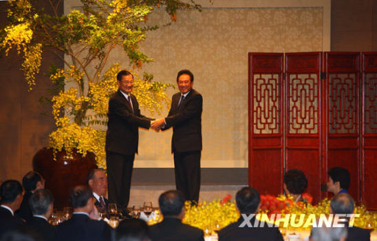 新華網臺北11月4日電(記者陳斌華 趙博)中國國民黨榮譽主席連戰4日晚在臺北設宴歡迎海協會會長陳云林及其率領的海協會協商代表團一行。