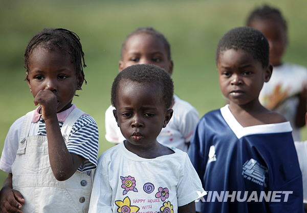 1月19日,太子港團結(jié)友愛孤兒院的孩子們在院子里玩耍。新華社記者邢廣利攝