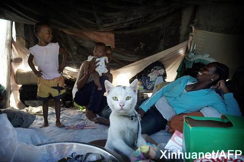 1月21日,地震受災(zāi)民眾在海地首都太子港的家樂福地區(qū)的一個臨時帳篷里玩耍。海地當?shù)貢r間12日下午發(fā)生強震,造成巨大人員傷亡和財產(chǎn)損失。新華社/法新