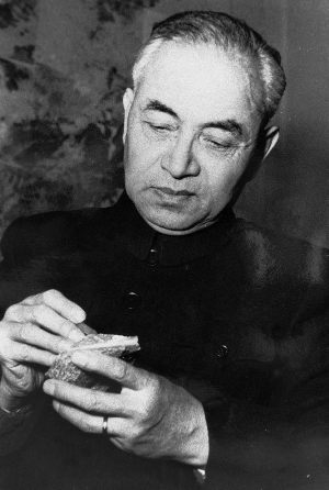 李四光同志是一面旗幟……在科研工作中做出了卓越成就,對社會主義建設作出了很大的貢獻,你們要學習他。——周恩來