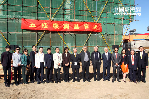中國臺灣網10月2日北京消息 2日上午,位于石景山區的北京臺灣街建設工地舉行儀式,為仿建具有愛國歷史意義的臺灣霧峰林家“五桂樓”奠基。全國臺灣研究會副會長孫曉郁、海協會副會長張銘清等有關部門負責人出席奠基儀式。多位參加國慶六十周年觀禮活動的臺灣霧峰林家后人也專程參加了儀式。