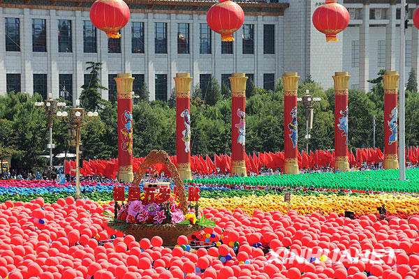 10月1日,首都各界慶祝中華人民共和國成立60周年大會在北京天安門廣場舉行。這是“明天更美好”方陣中5000多名少年兒童手持彩色氣球、花環走向天安門前的中心區。 新華社記者郭大岳攝